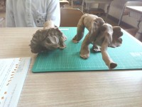 5月6日(金)に粘土を使って自分だけの「にぎにぎワールド」を作りました。「にぎる強さで形が変わるよ。」「指でつまむと角みたいになるね。」と粘土を触りながらたくさんの発見があったようです。 細く伸...