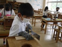 図工「ギコギコクリエーター」では,のこぎりを使って,卓上カレンダー作りに挑戦しました。 はじめてのこぎりを使うため,なかなかまっすぐに木が切れませんでしたが,繰り返すうちにまっすぐ平らな断面をつ...