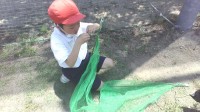 6月2日(木),野菜を育てている畑に鳥が芽を食べに来ていることについてクラスで話し合いました。「鳥は,きらきらしているものが苦手だから太陽が当たったら光るものをつけよう。」「大きなカラスに見えるも...