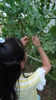 毎朝、庭のスナップエンドウを収穫しています。モンシロチョウの幼虫も大きくなりました!